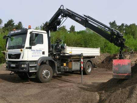 Gerne liefern wir auch zu Ihnen nach Hause. Unser LKW wiegt mit Ladung 18 Tonnen und benötigt eine Tor-Durchfahrtbreite von mindestens drei Metern. Mit seinem Greifarm kann er ca. 7 m weit, zielgenau über eventuell vorhandene Hecken, Zäune o.ä. abladen.