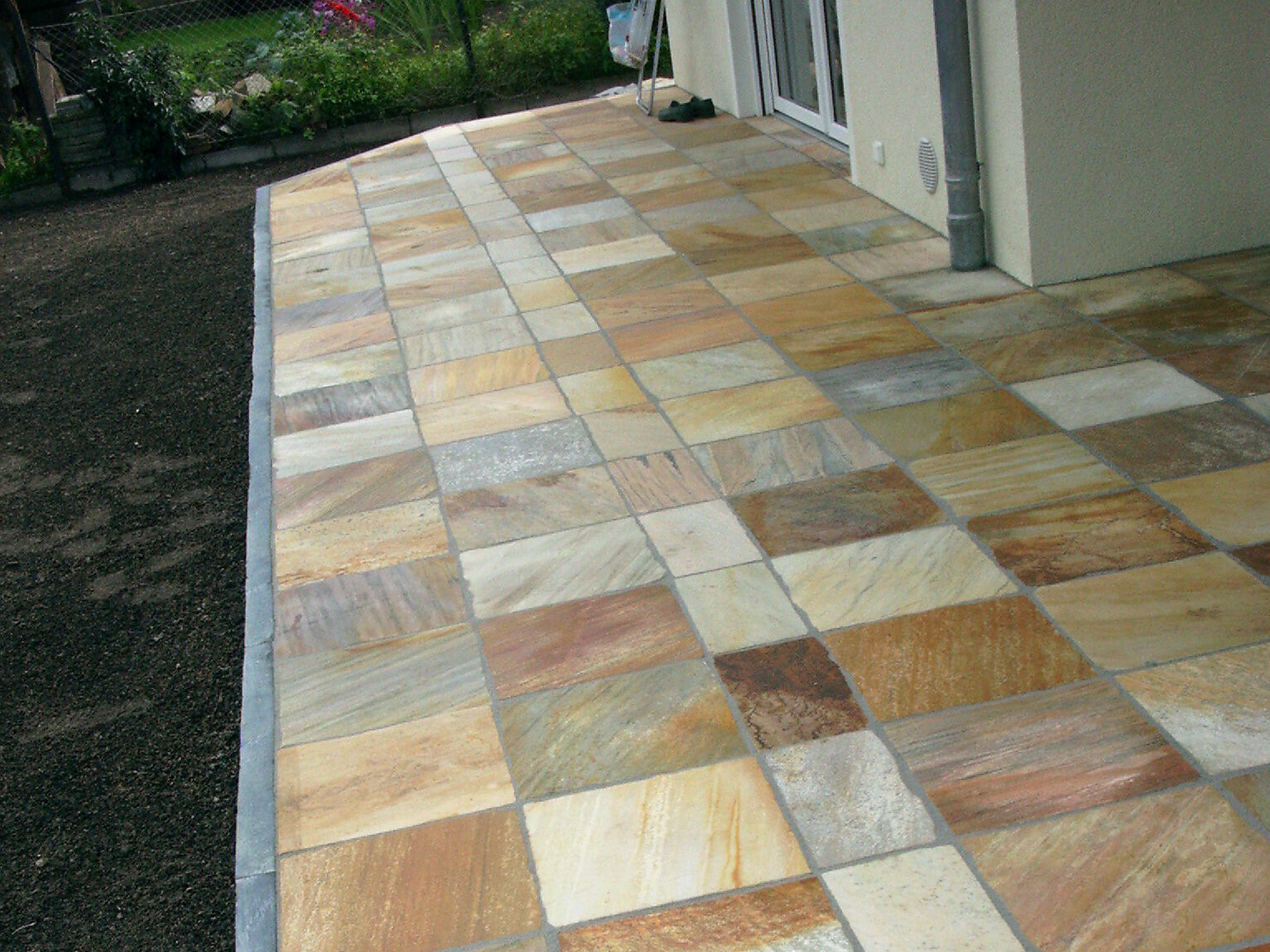 Große Steinformate vergrößern optisch die Fläche, kleine Steingrößen verkürzen sie. Mit auffälligen farbstarken Steinen werden Akzente gesetzt. Geschwungene Formen bringen Leben in die Gartengestaltung.