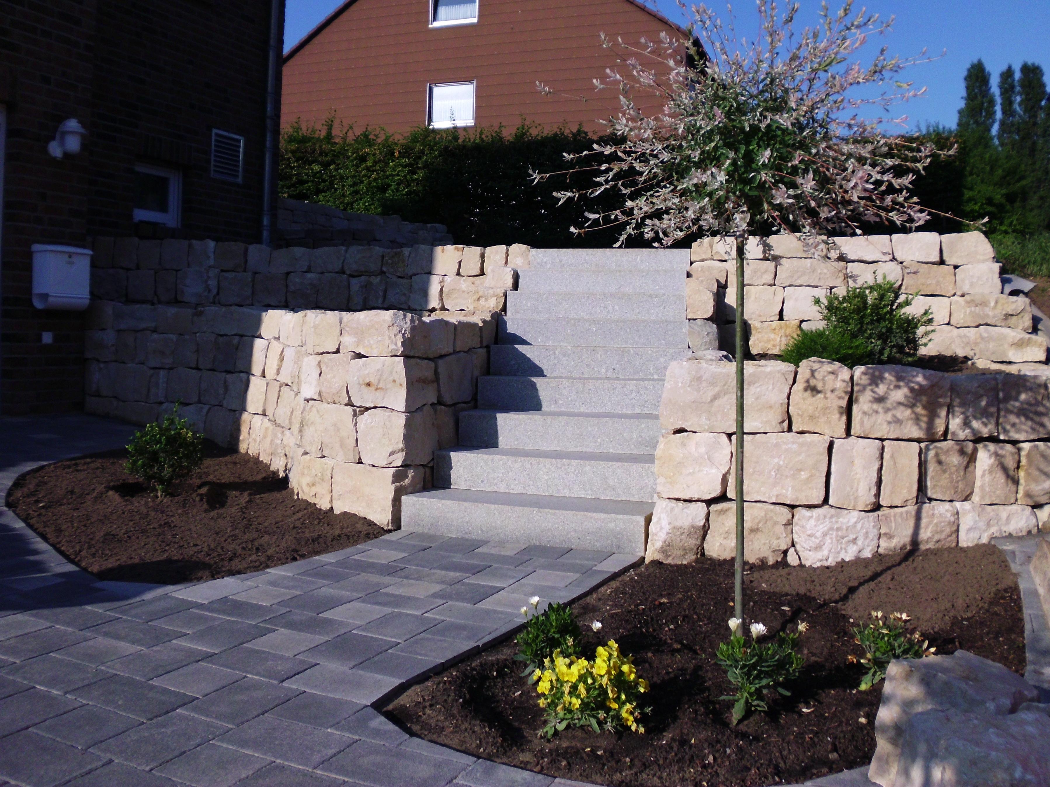 Auch bei der Befestigung von Hängen sind die Möglichkeiten nahezu unbegrenzt. Beliebt sind natürlich anmutende Mauern aus gebrochenen Natursteinen oder zum Verwechseln ähnlichen Beton-Mauersteinen. Mit Ihnen kann der Hang so stabil befestigt werden, dass er zukünftig ggf. auf mehreren Ebenen Intensiv genutzt und über eine integrierte Treppe bequem überwunden werden kann: Ein erhöhter Sitzplatz, ein Beet oder ein Teich mit sich anschließendem Bachlauf?